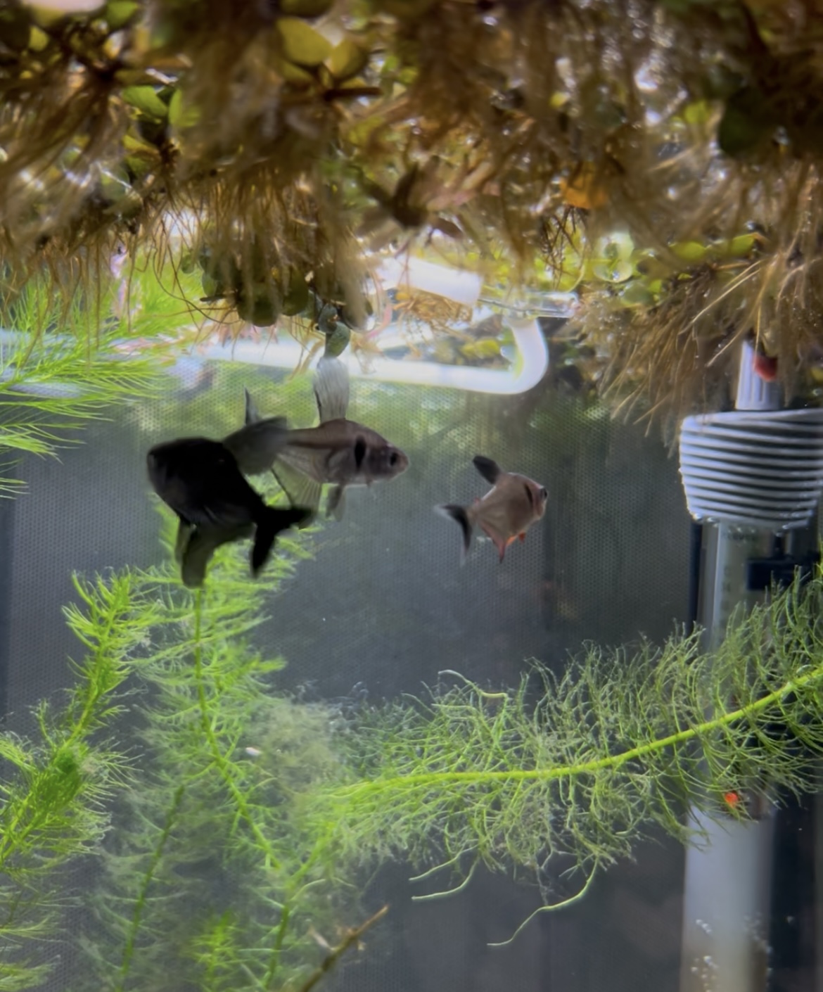 I like rasboras and my current favorites are the purple harlequin rasboras! They’re fast growers and the purple really stands out against their silver bodies.
